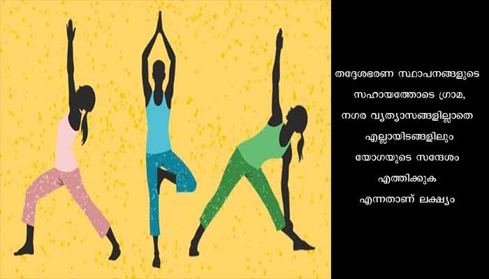 വിവിധ എൻ.ജി.ഒ.കൾ, യോഗ അസോസിയേഷനുകൾ, സ്പോർട്സ് കൗൺസിൽ എന്നിവരുടെ സഹകരണം ഉറപ്പാക്കും. തദ്ദേശഭരണ സ്ഥാപനങ്ങളുടെ സഹായത്തോടെ ഗ്രാമ, നഗര വ്യത്യാസങ്ങളില്ലാതെ എല്ലായിടങ്ങളിലും യോഗയുടെ സന്ദേശം എത്തിക്കുക എന്നതാണ് ലക്ഷ്യം. യോഗ ജീവിതചര്യയുടെ ഭാഗമാക്കുന്നതിന് ആയുഷ് വകുപ്പ് വലിയ പ്രാധാന്യം നൽകി വരുന്നു. ആയുഷ് വകുപ്പിന്റെ കീഴിലുള്ള 593 സ്ഥാപനങ്ങളിൽ യോഗ പരിശീലകരെ നിയമിച്ചിട്ടുണ്ട്. കൂടുതൽ വിവരങ്ങൾക്ക് ayushyogaclub@gmail.com എന്ന മെയിലിൽ ബന്ധപ്പെടുക.