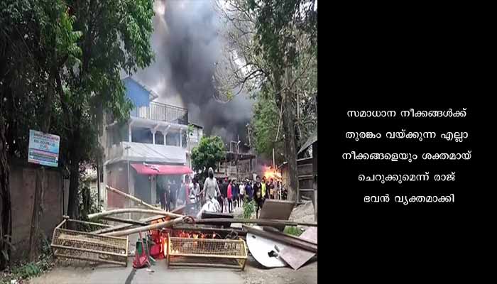 കഴിഞ്ഞ ദിവസം മണിപ്പൂരിൽ വ്യവസായ മന്ത്രിയുടെ വീടിനു അക്രമികൾ തീയിട്ടിരുന്നു. വ്യവസായ മന്ത്രി നെംച കിപ്ജെന്റെ ഔദ്യോഗിക വസതിക്കാണ് തീയിട്ടത്. അക്രമികൾക്ക് വേണ്ടി സുരക്ഷാ സേന തിരച്ചിൽ ആരംഭിച്ചു. സമാധാന നീക്കങ്ങൾക്ക് തിരിച്ചടിയായി മണിപ്പൂരിൽ വീണ്ടും വെടിവപ്പുണ്ടായിരുന്നു. 9 പേരാണ് വെടിവയ്പ്പിൽ കൊല്ലപ്പെട്ടത്. സമാധാന നീക്കങ്ങൾക്ക് തുരങ്കം വയ്ക്കുന്ന എല്ലാ നീക്കങ്ങളെയും ശക്തമായ് ചെറുക്കുമെന്ന് രാജ് ഭവൻ വ്യക്തമാക്കി.