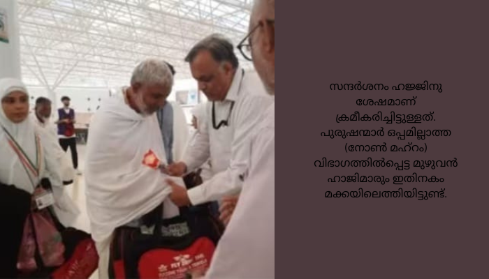 ഹജ്ജിനു ശേഷമുള്ള മദീന സന്ദർശനം 2023 ജൂലൈ നാല് മുതൽ ആരംഭിക്കും. ജിദ്ദ വിമാനത്താവളം വഴി എത്തിയ ഹാജിമാരായിരിക്കും ഹജ്ജ് കർമങ്ങൾക്ക് ശേഷം മദീന സന്ദർശിക്കുക. ഹജ്ജ് കമ്മിറ്റി മുഖേന എത്തിയ ഹാജിമാർക്കുള്ള ബലി കൂപ്പണുകൾ വിതരണം ആരംഭിച്ചു. നാട്ടിൽ നിന്നും ബലി അറുക്കുന്നതിനുള്ള പണം അടച്ചവർക്കാണ് ബലികൂപ്പൺ (അദാഹി കാർഡ്) ലഭിക്കുക. ഇത് നാട്ടിൽ നിന്നും ഹജ്ജ് വളണ്ടിയർമാരായി (ഖാദിമുൽ ഹുജ്ജാജ്) എത്തിയവരും മറ്റു വളണ്ടിയർമാരുമാണ് വിതരണം ചെയ്യുക. ഇന്ത്യയിൽ നിന്നുള്ള എൺപതിനായിരത്തോളം തീർഥാടകർക്ക് ഇത്തവണ മശാഇർ മെട്രോ ട്രെയിനിൽ യാത്ര ചെയ്യാനാവും. മറ്റ് ഹാജിമാർ ബസുകളിലായിരിക്കും ഹജ്ജ് ചടങ്ങുകൾ നടക്കുന്ന സ്ഥലങ്ങളിലേക്ക് യാത്ര ചെയ്യുക