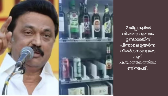 ചെന്നൈ: 2023 ജൂൺ 22 മുതൽ 500 മദ്യശാലകൾ അടച്ചു പൂട്ടാൻ ഉത്തരവിറക്കി തമിഴ്നാട്. മുഖ്യമന്ത്രി എം.കെ സ്റ്റാലിന്റെ നിർദ്ദേശപ്രകാരം ടാസ്മാക്ക് കോർപ്പറേഷനാണ് ഉത്തരവ് ഇറക്കിയത്. ഘട്ടം ഘട്ടമായി മദ്യശാലകളുടെ എണ്ണം കുറയ്ക്കാനുള്ള സർക്കാർ തീരുമാനത്തിന്റെ ഭാഗമായാണ് നടപടി. ചെന്നൈയിൽ മാത്രം 138 മദ്യശാലകളാണ് പൂട്ടുക. കോയമ്പത്തൂർ മേഖലയിൽ 138 ഉം മധുരയിൽ 125ഉം മദ്യശാലകൾ അടച്ചിടും. എക്സൈസ് മന്ത്രി സെന്തിൽ ബാലാജി ഇത് സംബന്ധിച്ച നിർദ്ദേശം കഴിഞ്ഞ 2023 ഏപ്രിലിൽ നൽകിയിരുന്നു.