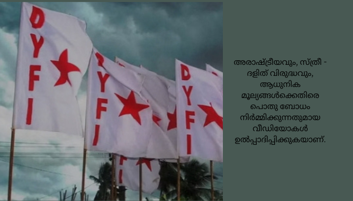 സോഷ്യൽ മീഡിയ കണ്ടന്റ് ക്രിയേറ്റിംഗ് മേഖലയിൽ മാനദണ്ഡങ്ങൾ കൊണ്ട് വരണമെന്നും സാമൂഹ്യ വിരുദ്ധവും സ്ത്രീ വിരുദ്ധവുമായ വീഡിയോകൾ ചെയ്യുന്നവർക്കെതിരെ നിയമ നടപടി കൈക്കൊള്ളണമെന്നും DYFI സംസ്ഥാന സെക്രട്ടറിയേറ്റ് ആവശ്യപ്പെട്ടു. സമീപ കാലത്ത് സോഷ്യൽ മീഡിയ വീഡിയോ പ്ലാറ്റ്ഫോമുകളുടെ വളർച്ച ദൃശ്യ മാധ്യമ രംഗത്ത് വിപ്ലവകരമായ മാറ്റങ്ങളാണ് ഉണ്ടാക്കി കൊണ്ടിരിക്കുന്നത്.