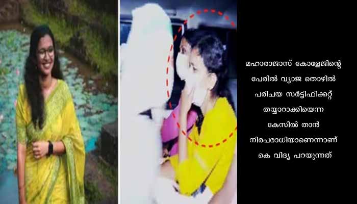 മഹാരാജാസ് കോളേജിന്റെ പേരില് വ്യാജ തൊഴില് പരിചയ സര്ട്ടിഫിക്കറ്റ് തയ്യാറാക്കിയെന്ന കേസില് താന് നിരപരാധിയാണെന്നാണ് കെ വിദ്യ പറയുന്നത്. തന്നെ രാഷ്ട്രീയ വൈരാഗ്യം മൂലം കരുവാക്കിയതാണെന്നും കേസില് മനപൂര്വ്വം കുടുക്കിയതാണെന്നും വിദ്യ മൊഴി നല്കി. താന് വ്യാജ സര്ട്ടിഫിക്കറ്റ് എവിടെയും നല്കിയിട്ടില്ല. പഠനത്തില് മിടുക്കിയായ തനിക്ക് വ്യാജ സര്ട്ടിഫിക്കറ്റിന്റെ ആവശ്യമില്ല. കേസിന് പിന്നില് കോണ്ഗ്രസ് അനുകൂല അധ്യാപക സംഘടനയാണെന്നും വിദ്യ മൊഴി നല്കി.