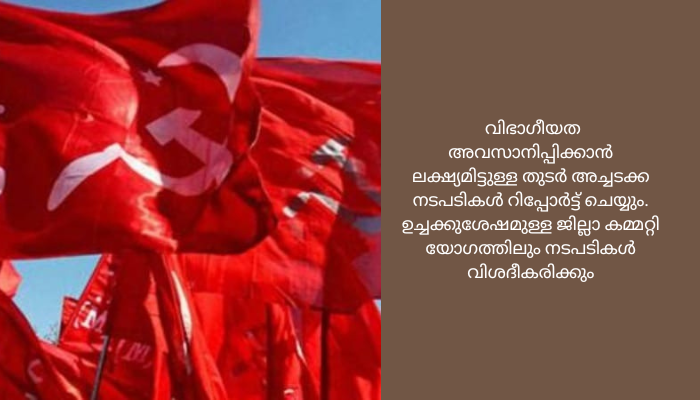 ജില്ലയിലെ വിഭാഗീയതക്ക് നേതൃത്വം നൽകിയത് സെക്രട്ടറിയറ്റ് അംഗങ്ങളായ പി.കെ ശശി, വി.കെ. ചന്ദ്രൻ ജില്ലാ കമ്മറ്റി അംഗം ചാമുണ്ണി എന്നിവരാന്നെന്ന് അന്വേഷണ കമ്മീഷൻ കണ്ടെത്തിയിരുന്നു. ഇതിന്റെ അടിസ്ഥാനത്തിൽ മൂന്ന് പേർക്കും കാരണം കാണിക്കൽ നോട്ടീസ് നൽകിയിട്ടുണ്ട്. കാരണം കാണിക്കൽ നോട്ടീസിന് ലഭിച്ച മറുപടി തൃപ്തികരമല്ലെങ്കിൽ മൂന്ന് പേർക്കെതിരെയും പാർട്ടി അച്ചടക്ക നടപടി സ്വീകരിക്കും