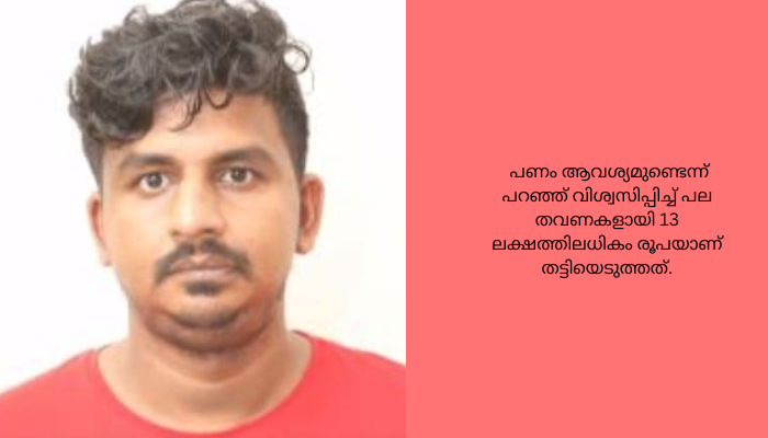 കോഴിക്കോട് ഗോവിന്ദപുരം സ്വദേശിയായ പരാതിക്കാരിയെ ദുബായിൽ എഞ്ചിനീയറാണെന്ന വ്യാജേന മാട്രിമോണിയൽ സൈറ്റിൽ നിന്നും ശേഖരിച്ച വിവരങ്ങൾ ഉപയോഗിച്ച് വിദേശ മൊബൈൽ നമ്പറിൽ നിന്ന് വാട്സ്ആപ്പ് മുഖേനയും ഫോൺ കോൾ വഴിയും ബന്ധപ്പെട്ട് വിവാഹം കഴിക്കാമെന്ന് വാഗ്ദാനം നൽകിയാണ് തട്ടിപ്പ് നടത്തിയത്. ചില കേസുകളിൽ കുടുങ്ങിയതിനാൽ അതിൽ നിന്നും ഒഴിവാകുന്നതിന് പണം ആവശ്യമുണ്ടെന്ന് പറഞ്ഞ് വിശ്വസിപ്പിച്ച് പല തവണകളായി 13 ലക്ഷത്തിലധികം രൂപയാണ് തട്ടിയെടുത്തത്.