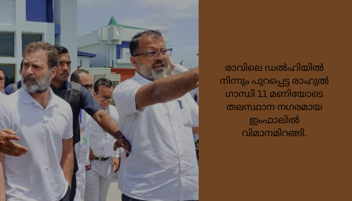 കുക്കി മേഖലയായ ചുരാചന്ദ്പുരിയിലേക്കാണ് ആദ്യ സന്ദർശനത്തിന് പദ്ധതിയിട്ടിരുന്നത്, തുടർന്ന് ഉച്ചയ്ക്ക് ശേഷം ഇംഫാലിലേക്കു മടങ്ങുന്ന രാഹുൽ മെയ്തെയ് അഭയാർഥി ക്യാംപുകളിലേക്ക് പുറപ്പെടുമെന്നാണ് അറിയിച്ചിരുന്നത്. തുടർന്ന് മെയ്തെയ് നേതാക്കളുമായി ചർച്ച നടത്തും.സംസ്ഥാനത്ത് വിവിധയിടങ്ങളിലായുള്ള 300 ക്യാംപുകളിലായി 50,000 പേരെയാണ് അഭയം തേടിയിരിക്കുന്നത്. ആഭ്യന്തര മന്ത്രി അമിത് ഷാ സംസ്ഥാനം സന്ദർശിച്ച് സമാധാനത്തിന് ആഹ്വാനം ചെയ്തിരുന്നെങ്കിലും ആക്രമണം തുടരുകയാണ്. പലയിടത്തും സൈനികർക്കെതിരേയും ബിജെപി നേതാക്കളുടെ വീടുകൾക്കെതിരേയും അക്രമികൾ തിരിഞ്ഞിരുന്നു.