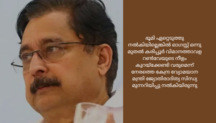 റണ്വേ വികസനത്തിനായി കരിപ്പൂരില് ഏറ്റെടുത്ത ഭൂമിയുടെ വില നിര്ണയിച്ച് ഉടമകളുമായി ധാരണയായി,പാരിസ്ഥിതികാഘാത പഠനം കൂടി പൂര്ത്തിയാക്കി റിപ്പോര്ട്ട് ലഭിച്ചാല് ഉടന് ഭൂമി ഏറ്റെടുപ്പ് നടപടികളാരംഭിക്കും