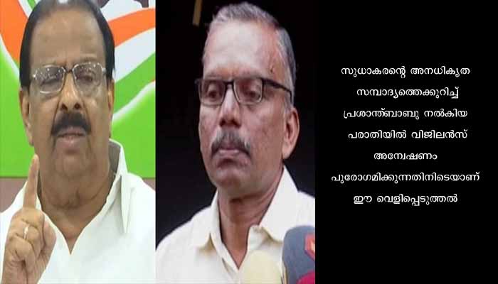 കെപിസിസി പ്രസിഡന്റ് പണത്തിനുവേണ്ടി എന്തും ചെയ്യുമെന്ന് മുൻ ഡ്രൈവറുമായ എം പ്രശാന്ത്ബാബു പറഞ്ഞു. സുധാകരന്റെ അനധികൃത സമ്പാദ്യത്തെക്കുറിച്ച് പ്രശാന്ത്ബാബു നൽകിയ പരാതിയിൽ വിജിലൻസ് അന്വേഷണം പുരോഗമിക്കുന്നതിനിടെയാണ് ഈ വെളിപ്പെടുത്തൽ.