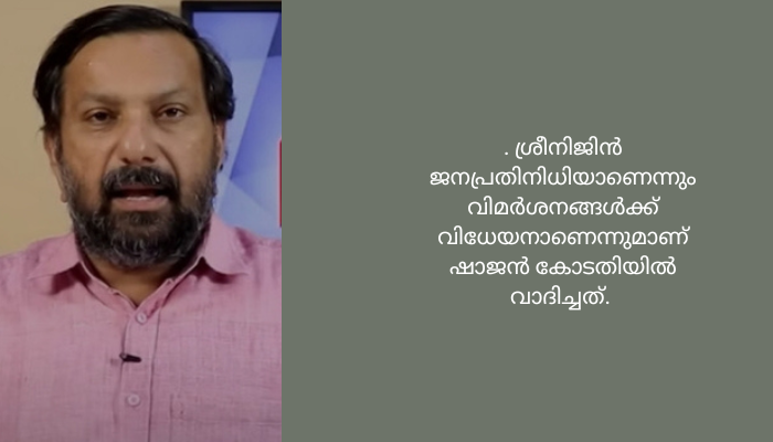 വ്യാജവാർത്ത നൽകി വ്യക്തിപരമായി അധിക്ഷേപിക്കാൻ ശ്രമിച്ചെന്ന പി.വി. ശ്രീനിജിൻ എംഎൽഎയുടെ പരാതിയിലാണ് ഷാജനെതിരായ കേസുകളിലൊന്ന് രജിസ്റ്റർ ചെയ്തിരിക്കുന്നത്. ശ്രീനിജിൻ ജനപ്രതിനിധിയാണെന്നും വിമർശനങ്ങൾക്ക് വിധേയനാണെന്നുമാണ് ഷാജൻ കോടതിയിൽ വാദിച്ചത്. വാർത്ത അപകീർത്തികരമാണെങ്കിൽ കൂടിയും പട്ടികവിഭാഗത്തിനെതിരേയുള്ള അതിക്രമം തടയൽ നിയമം പ്രയോഗിക്കാനാവില്ലെന്നും വാദിച്ചെങ്കിലും കോടതി പരിഗണിച്ചിരുന്നില്ല.