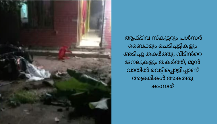 തിരുവനതപുരം: സിപിഎം നേതാവിൻ്റെ വീട് ആക്രമിച്ചു. തിരുവനതപുരം വിളപ്പിൽ ഏരിയ കമ്മിറ്റി അംഗം അസീസ് പേയാടിൻ്റെ വീട്ടിൽ ആണ് ബൈക്കിൽ എത്തിയ അഞ്ചംഗ സംഘം ആക്രമണം നടത്തിയത്. വീടിന് മുന്നിൽ പാർക്ക് ചെയ്തിരുന്ന ആക്ടീവ സ്കൂട്ടറും പൾസർ ബൈക്കും ചെടിച്ചട്ടികളും അടിച്ചു തകർത്തു. വീടിൻറെ ജനലുകളും തകർത്ത്, മുൻ വാതിൽ വെട്ടിപ്പൊളിച്ചാണ് അക്രമികൾ അകത്തു കടന്നത്. വീട്ടമ്മ ബഹളം വച്ചതോടെ ഇവർ പുറത്തേക്കിറങ്ങി ഓടി. പൊലീസ് ഇവർക്കായുള്ള തിരച്ചിൽ ആരംഭി