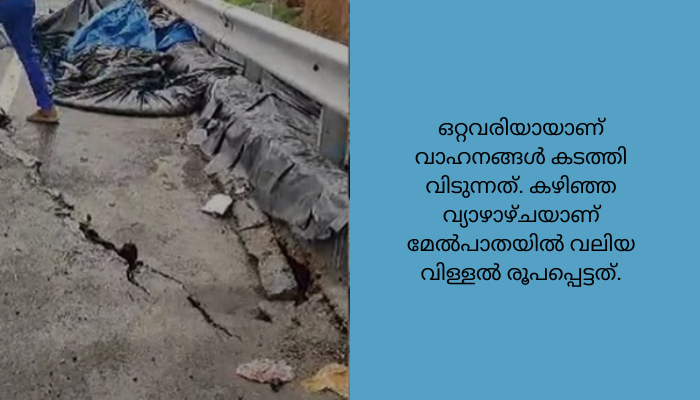 പ്രധാന റോഡിന്‍റെ ഭാഗം ഇടിഞ്ഞു സർവ്വീസ് റോഡിലേക്ക് വീഴാനുള്ള സാധ്യതയുള്ളതിനാൽ ഒറ്റവരിയായാണ് വാഹനങ്ങൾ കടത്തി വിടുന്നത്. കഴിഞ്ഞ വ്യാഴാഴ്ചയാണ് മേൽപാതയിൽ വലിയ വിള്ളൽ രൂപപ്പെട്ടത്.