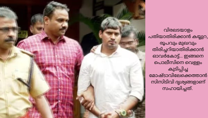 മൂന്ന് വീടുകളിൽ നിരനിരയായി മോഷണം പൂർത്തിയാക്കി ഈ മാസം ഒന്നിന് തിരിച്ചുപോയി. വിരലടയാളം പതിയാതിരിക്കാൻ കയ്യുറ, രൂപവും മുഖവും തിരിച്ചറിയാതിരിക്കാൻ ഓവർകോട്ട്… ഇങ്ങനെ പൊലീസിനെ വെള്ളം കുടിപ്പിച്ച മോഷ്ടാവിലേക്കെത്താൻ സിസിടിവി ദൃശ്യങ്ങളാണ് സഹായിച്ചത്. ഇയാൾ കയറിയ ഓട്ടോയിലെ ഡ്രൈവർ നൽകിയ വിവരമാണ് നിർണായകമായത്. ഹോട്ടലുകളിൽ നൽകിയ വിലാസവും വിമാന ടിക്കറ്റുകളും തപ്പിച്ചെന്നാണ് ഇയാളെ പിടിച്ചത്.