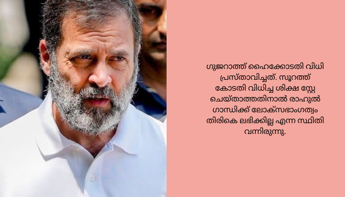 2019ൽ കോലാറിൽ നടത്തിയ പ്രസംഗത്തിലെ മോദി പരാമർശത്തിനാണ് രാഹുൽ ഗാന്ധിക്ക് സൂറത്ത് സി.ജെ.എം കോടതി രണ്ടു വർഷം തടവു ശിക്ഷിച്ചത്. മജിസ്ട്രേറ്റ് കോടതിയുടെ വിധി സെഷൻസ് കോടതിയും സ്റ്റേ ചെയ്യാത്ത സാഹചര്യത്തിലാണ് ഹൈക്കോടതിയെ സമീപിച്ചത്.മോദി പരാമർശവുമായി ബന്ധപ്പെട്ട അപകീർത്തി കേസിൽ സൂറത്ത് കോടതി 2023 മാർച്ച് 23 നാണ് സൂറത്ത് കോടതി രാഹുൽഗാന്ധിയെ ശിക്ഷിച്ചത്.