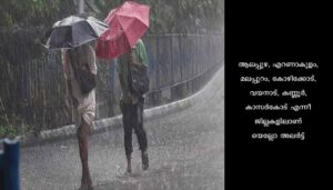 കേരളത്തിൽ 08/07/23 ശനിയാഴ്ച വ്യാപകമായ മഴയ്ക്ക് സാധ്യതയുള്ളതായി കേന്ദ്രകാലാവസ്ഥ വകുപ്പ്. കനത്ത മഴ കണക്കിലെടുത്ത് ഏഴ് ജില്ലകളില് യെല്ലോ അലര്ട്ട് പ്രഖ്യാപിച്ചു. ആലപ്പുഴ, എറണാകുളം, മലപ്പുറം, കോഴിക്കോട്, വയനാട്, കണ്ണൂര്, കാസര്കോട് എന്നീ ജില്ലകളിലാണ് യെല്ലോ അലര്ട്ട്.