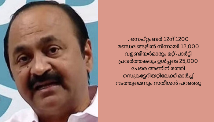 തിരുവനന്തപുരം: പിണറായി വിജയൻ സർക്കാരിന്റെ അഴിമതിക്കും കെടുകാര്യസ്ഥതയ്ക്കുമെതിരെ റേഷൻ കട മുതൽ സെക്രട്ടേറിയേറ്റ് വരെ സമരം നടത്തുമെന്ന് യുഡിഎഫ്. സെപ്ടംബർ 4 മുതൽ 11 വരെ എല്ലാ പഞ്ചായത്ത് മുൻസിപ്പൽ തലങ്ങളിലും കാൽനട ജാഥ മുതൽ ക്യാമ്പെയ്നുകൾ വരെ സംഘടിപ്പിക്കുമെന്ന് പ്രതിപക്ഷ നേതാവ് വി.ഡി. സതീശൻ പറഞ്ഞു. സെപ്റ്റംബര് 12ന് 1200 മണ്ഡലങ്ങളില് നിന്നായി 12,000 വളണ്ടിയര്മാരും മറ്റ് പാര്ട്ടി പ്രവര്ത്തകരും ഉള്പ്പടെ 25,000 പേരെ അണിനിരത്തി സെക്രട്ടേറിയറ്റിലേക്ക് മാര്ച്ച് നടത്തുമെന്നും സതീശന് പറഞ്ഞു.