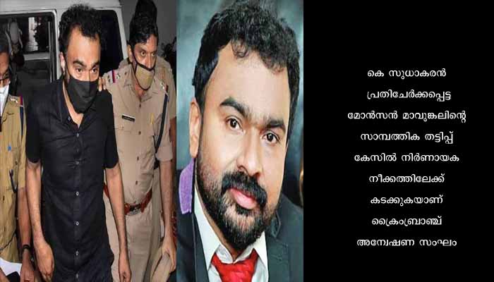 തിരുവനന്തപുരം: കെപിസിസി അധ്യക്ഷൻ കെ സുധാകരന് എതിരായ സാമ്പത്തിക തട്ടിപ്പ് കേസിന്റെ അന്വേഷണം നിർണായക ഘട്ടത്തിലേക്ക്. മോൻസൻ മാവുങ്കലുമായി നിരവധി പൊലീസ് ഉദ്യോഗസ്ഥർക്ക് സാമ്പത്തിക ഇടപാടുണ്ടെന്ന് അന്വേഷണ സംഘം കണ്ടെത്തി.