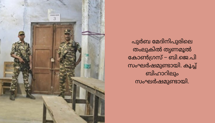ആവശ്യമായ സുരക്ഷ ഉറപ്പ് വരുത്താൻ ഓരോ ബൂത്തിലും ബംഗാൾ പൊലീസിന് പുറമേ നാല് കേന്ദ്രസേനാംഗങ്ങളെ വീതം വിന്യസിച്ചിരുന്നു. പുർബ മേദിനിപുരിലെ തംലുകിൽ തൃണമൂൽ കോൺഗ്രസ് – ബി.ജെ.പി സംഘർഷമുണ്ടായി. കൂച്ച് ബിഹാറിലും സംഘർഷമുണ്ടായി.