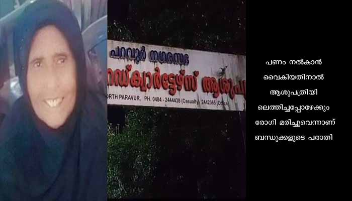 ആംബുലൻസ് വൈകിയതിനാൽ പറവൂർ താലൂക് ആശുപത്രിയിൽ രോഗി മരിച്ചതായി പരാതി