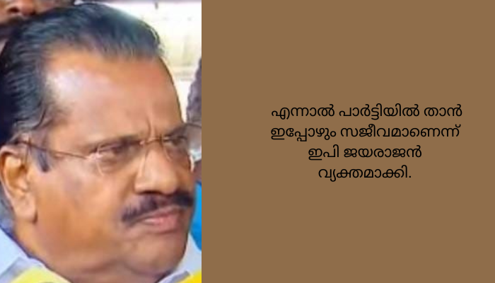 മുഖ്യമന്ത്രിയെ കണ്ടതിൽ പ്രത്യേകതയില്ല. പാർട്ടിയിൽ സജീവമാകാൻ മുഖ്യമന്ത്രി നിർദേശം നൽകിയതായി നേരത്തെ വാർത്തകൾ വന്നിരുന്നു. എന്നാൽ പാർട്ടിയിൽ താൻ ഇപ്പോഴും സജീവമാണെന്ന് ഇപി ജയരാജൻ വ്യക്തമാക്കി.