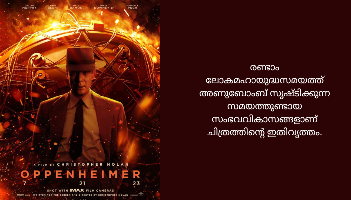 അണുബോംബിന്റെ പിതാവ് എന്നറിയപ്പെടുന്ന റോബര്ട്ട് ഓപ്പണ്ഹൈമറിന്റെ ജീവിത സംഭവങ്ങളെ ആസ്പദമാക്കിയാണ് ചിത്രം ഒരുക്കിയിരിക്കുന്നത്.ഓപ്പണ്ഹൈമര് എന്ന ചിത്രം ജൂലൈ 21ന് ലോകമെമ്ബാടുമുള്ള തിയേറ്ററുകളില് റിലീസ് ചെയ്യും.
