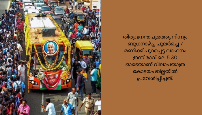 കോട്ടയം: അന്തരിച്ച മുൻ മുഖ്യമന്ത്രിയെ കാണാൻ തെരുവീഥിയിൽ ലക്ഷങ്ങളാണ് അണിനിരന്നത്. രാപ്പകലില്ലാതെ അദ്ദേഹത്തെ ഒരു നോക്കുകാണാൻ വഴിയോരങ്ങളിൽ മെഴുകുതിരിയുമായി കുട്ടികളടക്കം പുലർച്ച 2 മണിക്കുമെല്ലാം കാത്തുനിൽക്കുന്ന കാഴ്ച്ച കേരളം മുൻപ് കണ്ടിട്ടില്ല. തിരുവനന്തപുരത്തു നിന്നും ബുധനാഴ്ച്ച പുലർച്ചെ 7 മണിക്ക് പുറപ്പെട്ട വാഹനം ഇന്ന് രാവിലെ 5.30 ഓടെയാണ് വിലാപയാത്ര കോട്ടയം ജില്ലയിൽ പ്രവേശിപ്പിച്ചത്.
