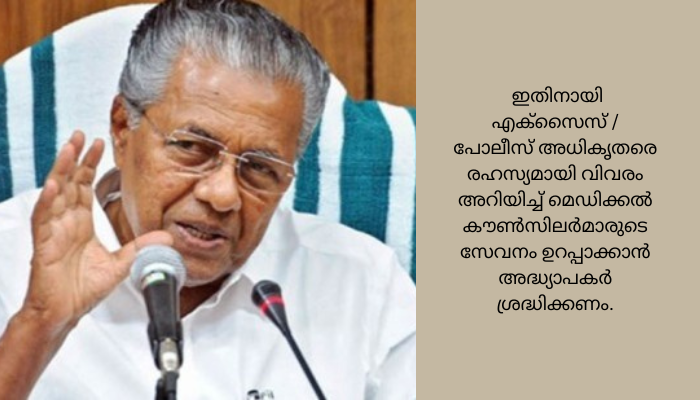 കുട്ടികളിലെ മയക്കുമരുന്ന് ഉപഭോഗം ശ്രദ്ധയില്പ്പെട്ടാല് സ്കൂള് അധികൃതര് നിര്ബന്ധമായും പോലീസിനെയോ എക്സൈസിനെയോ വിവരം അറിയിക്കണമെന്ന് മുഖ്യമന്ത്രി പിണറായി വിജയൻ നിര്ദേശിച്ചു.