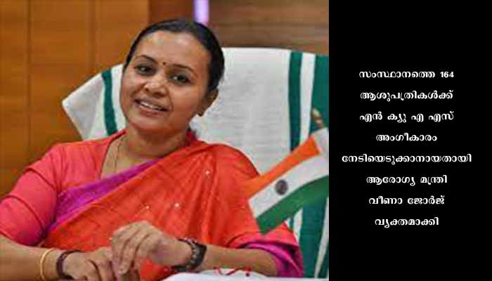 തിരുവനന്തപുരം: സംസ്ഥാനത്തെ നാല് ആശുപത്രികള്ക്ക് കൂടി നാഷനല് ക്വാളിറ്റി അഷ്വറന്സ് സ്റ്റാന്ഡേര്ഡ് (എന് ക്യു എ എസ്) അംഗീകാരം ലഭിച്ചു. ഒരു സാമൂഹികാരോഗ്യ കേന്ദ്രത്തിനും മൂന്ന് കുടുംബാരോഗ്യ കേന്ദ്രങ്ങള്ക്കുമാണ് ദേശീയ ഗുണനിലവാര അംഗീകാരം ലഭിച്ചത്. കൊല്ലം സാമൂഹികാരോഗ്യ കേന്ദ്രം തൃക്കടവൂര് 87 ശതമാനം സ്കോറും കോട്ടയം എഫ് എച്ച് സി ഉദയനാപുരം 97 ശതമാനം സ്കോറും കൊല്ലം എഫ് എച്ച് സി ശൂരനാട് സൗത്ത് 92 ശതമാനം സ്കോറും കൊല്ലം എഫ് എച്ച് സി പെരുമണ് 84 ശതമാനം സ്കോറും നേടിയാണ് പുതുതായി അംഗീകാരം നേടിയത്. ഇതോടെ സംസ്ഥാനത്തെ 164 ആശുപത്രികള്ക്ക് എന് ക്യു എ എസ് അംഗീകാരം നേടിയെടുക്കാനായതായി ആരോഗ്യ മന്ത്രി വീണാ ജോര്ജ് വ്യക്തമാക്കി. അഞ്ച് ജില്ലാ ആശുപത്രികള്, നാല് താലൂക്ക് ആശുപത്രികള്, ഒമ്പത് സാമൂഹികാരോഗ്യ കേന്ദ്രങ്ങള്, 39 അര്ബന് പ്രൈമറി ഹെല്ത്ത് സെന്റര്, 107 കുടുംബാരോഗ്യ കേന്ദ്രങ്ങള് എന്നിങ്ങനെയാണ് എന് ക്യു എ എസ് അംഗീകാരം നേടിയിട്ടുള്ളത്. ഇതുകൂടാതെ പത്ത് ആശുപത്രികള്ക്ക് ലക്ഷ്യ സര്ട്ടിഫിക്കേഷനും ലഭിച്ചിട്ടുണ്ട്. എട്ട് വിഭാഗങ്ങളിലായി 6,500 ഓളം ചെക്ക് പോയിന്റുകള് വിലയിരുത്തിയാണ് ഒരാശുപത്രിയെ ദേശീയ ഗുണനിലവാരത്തിലേക്ക് ഉയര്ത്തുന്നത്. എന് ക്യു എ എസ് അംഗീകാരത്തിന് മൂന്ന് വര്ഷ കാലാവധിയാണ്. മൂന്ന് വര്ഷത്തിന് ശേഷം ദേശീയതല സംഘത്തിന്റെ പുനഃപരിശോധന ഉണ്ടാകും. കൂടാതെ വര്ഷാവര്ഷം സംസ്ഥാനതല പരിശോധനയുമുണ്ടാകും. എന് ക്യു എ എസ് അംഗീകാരം ലഭിക്കുന്ന പി എച്ച് സികള്ക്ക് രണ്ട് ലക്ഷം രൂപ വീതവും മറ്റ് ആശുപത്രികള്ക്ക് ഒരു കിടക്കക്ക് 10,000 രൂപ എന്ന നിലയിലും വാര്ഷിക ഇന്സെന്റീവ് ലഭിക്കും. മികച്ച സൗകര്യങ്ങളും സേവനങ്ങളുമൊരുക്കി കൂടുതല് സര്ക്കാര് ആശുപത്രികളെ ദേശീയ ഗുണനിലവാരത്തിലേക്ക് ഉയര്ത്താനായി വലിയ പ്രവര്ത്തനങ്ങളാണ് നടന്നുവരുന്നതെന്ന് വീണാ ജോര്ജ് പറഞ്ഞു.