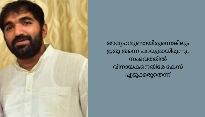 അദ്ദേഹമുണ്ടായിരുന്നെങ്കിലും ഇതു തന്നെ പറയുമായിരുന്നു. സംഭവത്തിൽ വിനായകനെതിരേ കേസ് എടുക്കരുതെന്ന് അപേക്ഷിക്കുന്നതായും ചാണ്ടി ഉമ്മന് മാധ്യമങ്ങളോട് പറഞ്ഞു