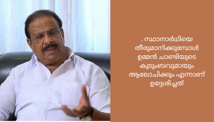 സ്ഥാനാര്ഥി ആരാണ് എന്ന ചോദ്യം മാധ്യമങ്ങളില് നിന്നുണ്ടായി. ഉമ്മന് ചാണ്ടിയുടെ കുടുംബത്തില് നിന്ന് ആകുമോ സ്ഥാനാര്ഥി എന്ന ചോദ്യത്തിന്, അതും പരിഗണിക്കും എന്നാണ് താന് ഉദ്ദേശിച്ചത്. ഉമ്മന് ചാണ്ടിയുടെ കുടുംബത്തില് നിന്നാണ് സ്ഥാനാര്ഥി എന്ന് പറയുകയായിരുന്നില്ല. സ്ഥാനാര്ഥിയെ തീരുമാനിക്കുമ്പോള് ഉമ്മന് ചാണ്ടിയുടെ കുടുംബവുമായും ആലോചിക്കും എന്നാണ് ഉദ്ദേശിച്ചത്.