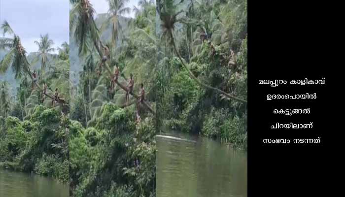 പുഴയിലേക്ക് ചാഞ്ഞ് നില്ക്കുന്ന തെങ്ങിന്റെ മുകളില് കയറിയ നാല് പേരടങ്ങുന്ന യുവാക്കളാണ് തെങ്ങ് മുറിഞ്ഞ് പുഴയിലേക്ക് വീണത്. കരുളായി സ്വദേശികളായ യുവാക്കളാണ് അപടത്തില്പ്പെട്ടത്. കാഴ്ചക്കാര് ഫോണില് പകര്ത്തിയ തെങ്ങ് ഒടിഞ്ഞ് വീഴുന്ന വീഡിയോ വൈറലായിട്ടുണ്ട്.