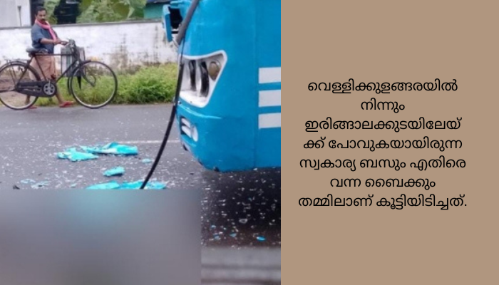 വെള്ളിക്കുളങ്ങരയില് നിന്നും ഇരിങ്ങാലക്കുടയിലേയ്ക്ക് പോവുകയായിരുന്ന സ്വകാര്യ ബസും എതിരെ വന്ന ബൈക്കും തമ്മിലാണ് കൂട്ടിയിടിച്ചത്. ഗുരുതരമായി പരിക്കേറ്റ സുധീറിനെ ആശുപത്രിയില് എത്തിച്ചെങ്കിലും ജീവന് രക്ഷിക്കാനായില്ല.