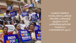 മണിപ്പൂരിനും വേണ്ടി സംസാരിച്ചതിന്റെ പേരിലാണ് തന്നെ സസ്പെൻഡ് ചെയ്തതെന്നും ഇനിയും അക്കാര്യത്തൽ മൗനം പാലിക്കാൻ തയാറല്ലെന്നും സഞ്ജയ് സിങ് പറഞ്ഞു. നസീർ ഹുസൈൻ, ജെബി മാത്തർ, രൺജീത് രഞ്ജൻ, രാഘവ് ഛദ്ദ, തുടങ്ങി നിരവധി പ്രതിപക്ഷ എംപിമാർ രാജ്യസഭയിൽ റൂൾ 267 പ്രകാരം മണിപ്പൂർ വിഷയത്തിൽ ചർച്ച ആവശ്യപ്പെട്ട് അടിയന്തര പ്രമേയത്തിന് നോട്ടീസ് നൽകിയിട്ടുണ്ട്.