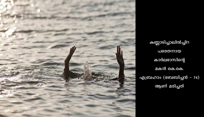 കുമരകം: വെള്ളത്തിൽ വീണ് മത്സ്യത്തൊഴിലാളിയായ ഗൃഹനാഥൻ മരിച്ചു. കണ്ണാടിച്ചാലിൽച്ചിറ പരേതനായ കാർലാേസിന്റെ മകൻ കെ.കെ. എബ്രഹാം (ബേബിച്ചൻ – 74) ആണ് മരിച്ചത്. വീട്ടിൽ നിന്നും കടയിലേക്ക് പാേകും വഴി തല കറങ്ങി കണ്ണാടിച്ചാൽ പാടത്തിന്റെ പുറംബണ്ടിൽ നിന്നും പാടത്തെ വെള്ളത്തിലേക്ക് വീഴുകയായിരുന്നു. ഉടൻ തന്നെ നാട്ടുകാർ കുമരകം കമ്മ്യൂണിറ്റി ഹെൽത്തു സെന്ററിൽ എത്തിച്ചെങ്കിലും രക്ഷിക്കാനായില്ല. ഭാര്യ: ഏലിയാമ്മ (ആലീസ്) കുറിച്ചി പൂഴിക്കുന്നേൽ കുടുംബാഗം. മക്കൾ: ലിബിമാേൾ, പരേതനായ ബെന്നി. മരുമകൻ: പരേതനായ ഷിബു അറയ്ക്കൽ (പുന്നയ്ക്കൽ ചുങ്കം).