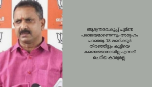 കേരളത്തിൽ പൊലീസ് സംവിധാനം പൂർണമായും തകർന്നു കഴിഞ്ഞു. യുപിയിൽ ക്രിമിനലുകളെയും മാഫിയകളെയും കൈകാര്യം ചെയ്യുന്ന രീതി കേരളത്തിലും മാതൃകയാക്കണം. ആഭ്യന്തരവകുപ്പ് പൂർണ പരാജയമാണെന്നും അദ്ദേഹം പറഞ്ഞു. 18 മണിക്കൂര് തിരഞ്ഞിട്ടും കുട്ടിയെ കണ്ടെത്താനായില്ല എന്നത് ചെറിയ കാര്യമല്ല. അതിഥി തൊഴിലാളികളെ കുറിച്ചും അവര്ക്കിടയിലുള്ള കുറ്റകൃത്യങ്ങളെ സംബന്ധിച്ചും മയക്കുമരുന്നുകളുടെ ഉപയോഗത്തെ കുറിച്ചും ശക്തമായ നിരീക്ഷണം ആവശ്യമുണ്ട്.