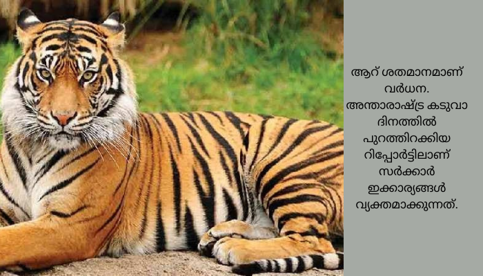 നാല് വർഷത്തിനിടെ 50 ശതമാനമാണ് കടുവകളുടെ എണ്ണത്തിൽ വർധനവുണ്ടായത്. രാജ്യത്ത് മധ്യപ്രദേശിലാണ് ഏറ്റവും കൂടുതൽ കടുവകളുള്ളത്. ഉത്തരാഖണ്ഡ്, മഹാരാഷ്ട്ര സംസ്ഥാനങ്ങളാണ് തൊട്ടുപിന്നിൽ. ഇതൊരു സ്ഥിതിവിവരക്കണക്കല്ലെന്നും കടുവകളുടെ സംരക്ഷണയിൽ രാജ്യത്തിന്റെ പ്രതിബദ്ധതയാണെന്നും വനം പരിസ്ഥിതി മന്ത്രി ഭൂപേന്ദർ യാദവ്