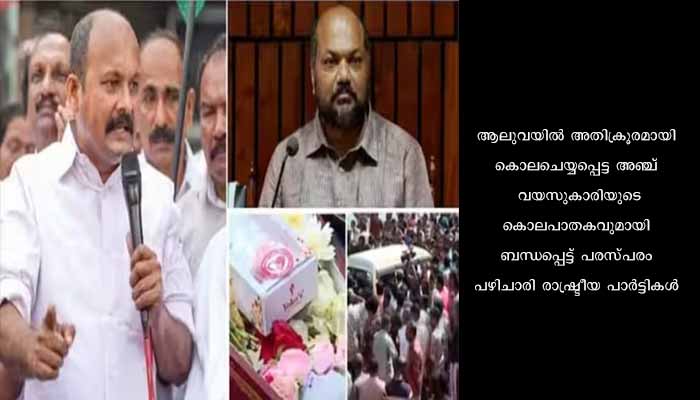 കൊച്ചി: ആലുവയിൽ അതിക്രൂരമായി കൊലചെയ്യപ്പെട്ട അഞ്ച് വയസുകാരിയുടെ കൊലപാതകവുമായി ബന്ധപ്പെട്ട് പരസ്പരം പഴിചാരി രാഷ്ട്രീയ പാർട്ടികൾ. 2023 ജൂലൈ 31ന് വിവിധ രാഷ്ട്രീയ പാർട്ടികളുടെ പ്രതിഷേധ മാർച്ചുകൾ നടക്കും. പൊലീസ് അനാസ്ഥയ്ക്കെതിരെ കോൺഗ്രസ്, ആലുവ പൊലീസ് സ്റ്റേഷൻ മാർച്ചും ബ്ലോക്ക് തലത്തിൽ പ്രതിഷേധ മാർച്ചും സംഘടിപ്പിക്കും. കോൺഗ്രസ് ഭരിക്കുന്ന നഗരസഭയുടെ വീഴ്ച ആരോപിച്ച് ഇടത് മുന്നണിയും 31ന് പ്രതിഷേധവുമായി രംഗത്തെത്തും. നഗരസഭയിലേക്കാണ് എൽ ഡി എഫ് മാർച്ച് നടത്തുക. കുട്ടിയുടെ കൊലപാതകത്തിൽ പൊലീസ് വീഴ്ച ആരോപിച്ച് 31ന് ബി ജെ പിയും എസ് പി ഓഫീസിലേക്ക് മാർച്ച് പ്രഖ്യാപിച്ചിട്ടുണ്ട്.