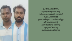 കളമശേരി: ജോബ് റിക്രൂട്ട്മെന്റ് സ്ഥാപനത്തില് അതിക്രമിച്ചു കയറി വനിതാ ജീവനക്കാരെ ആക്രമിക്കുകയും പാസ്പോര്ട്ടും പണമടങ്ങിയ ബാഗും മറ്റും കവര്ന്ന് കടന്നു കളഞ്ഞ കേസിലെ പ്രതികള് കളമശേരി പൊലീസിന്റെ പിടിയിലായി. കൊല്ലം, തേവലക്കര, ചവറ, ജോമി ലാന്ഡ് വീട്ടില്, ജോമി ജയിംസ് (45). കൊല്ലം, തേവലക്കര, ചവറ, വടക്കല് പുതുവേലില് വീട്ടില് യേശുദാസ് (36) എന്നിവരാണ് പിടിയിലായത്.