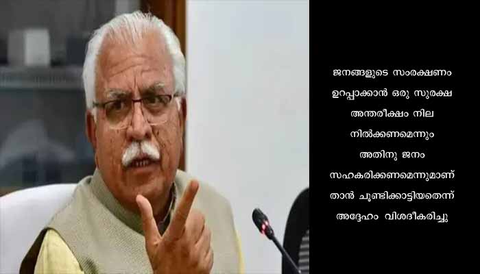 ഛണ്ഡീഗഢ്: ഹരിയാനയില്‍ വര്‍ഗീയ കലാപം രൂക്ഷമായതിനിടെ എല്ലാവരെയും സംരക്ഷിക്കാന്‍ സര്‍ക്കാരിനാകില്ലെന്ന മുഖ്യമന്ത്രി മനോഹര്‍ ലാല്‍ ഖട്ടാറിന്റെ പ്രസ്താവന വിവാദമായി. കഴിഞ്ഞദിവസം മാധ്യമങ്ങളോട് സംസാരിക്കവെയാണ് അദ്ദേഹം വിവാദപ്രസ്താവന നടത്തിയത്. എല്ലാവരും സൗമനസ്യം കാണിക്കണം, അതില്ലാതെ ഒരു സുരക്ഷയും ഉണ്ടാകില്ല. പോലീസിനോ സൈന്യത്തിനോ സര്‍ക്കാരിനോ എല്ലാവരേയും സംരക്ഷിക്കാന്‍ കഴിയില്ലെന്നും ഖട്ടാര്‍ പറഞ്ഞു.
