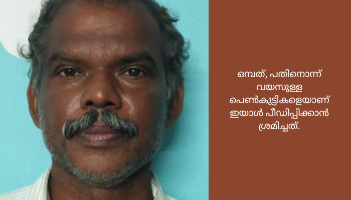 പാലക്കാട് : ചാലിശ്ശേരിയിൽ പ്രായപൂർത്തിയാകാത്ത പെൺകുട്ടികളെ പീഡിപ്പിക്കാൻ ശ്രമിച്ച 55 വയസുകാരൻ അറസ്റ്റിൽ. തൃശ്ശൂർ സ്വദേശി സജീവനാണ് അറസ്റ്റിലായത്. സഹോദരിയെ കാണാനായി സഹോദരിയുടെ വീട്ടിൽ എത്തിയ സജീവൻ അയൽവാസികളായ ഒമ്പത്, പതിനൊന്ന് വയസുള്ള പെൺകുട്ടികളെയാണ് ഇയാൾ പീഡിപ്പിക്കാൻ ശ്രമിച്ചത്.