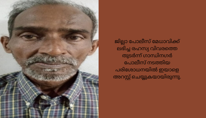 ഗാന്ധിനഗര് പോലീസ് സ്റ്റേഷൻ എസ്.എച്ച്.ഓ ഷിജി .കെ, എസ്.ഐ പ്രദീപ് ലാൽ, ജയൻപി.സി , സി.പി.ഓ ജസ്റ്റിൻ ജോയി എന്നിവർ ചേർന്നാണ് ഇയാളെ പിടികൂടിയത്. കോടതിയിൽ ഹാജരാക്കിയ ഇയാളെ റിമാന്ഡ് ചെയ്തു.