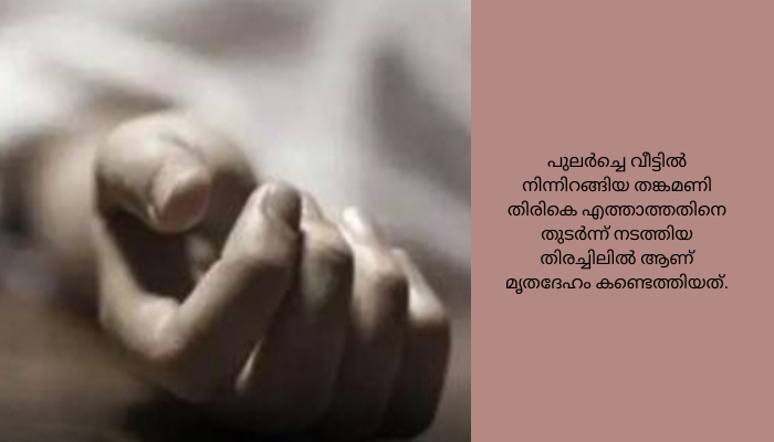 പുലര്ച്ചെ വീട്ടില് നിന്നിറങ്ങിയ തങ്കമണി തിരികെ എത്താത്തതിനെ തുടര്ന്ന് നടത്തിയ തിരച്ചിലില് ആണ് മൃതദേഹം കണ്ടെത്തിയത്.