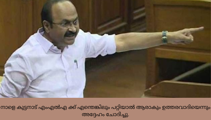 തിരുവനന്തപുരം : കുട്ടനാട് എംഎൽഎ തോമസ് കെ തോമസിൻറെ വധഭീഷണി പരാതിയെ ഗൗരവമായി കാണുന്നില്ലെന്ന് നിയമസഭയിൽ പ്രതിപക്ഷനേതാവ് വി ഡി സതീശൻ. ഒരാൾ ഒരു എംഎൽഎയെ കൊല്ലും എന്ന് ഒരു വർഷം മുൻപ് ഭീഷണിപ്പെടുത്തിയ പരാതിയിൽ ഒരു നടപടിയും ആയില്ല. ഇടതുപക്ഷത്തിൻറെ എംഎൽഎ ആയിട്ടും വേട്ടയാടുന്നു എന്നായിരുന്നു തോമസ് കെ തോമസിൻറെ പരാതിയെന്ന് പ്രതിപക്ഷ നേതാവ് വിഡി സതീശൻ പറഞ്ഞു. ഇടതുപക്ഷ എംഎൽഎക്ക് പോലും സംസ്ഥാനത്ത് രക്ഷയില്ലാത്ത അവസ്ഥ..എല്ലാം പാർട്ടി കോടതിയാണ് തീരുമാനിക്കുന്നത്. പാർട്ടി അന്വേഷണം മാത്രം നടക്കുന്നു. നാളെ കുട്ടനാട് എംഎൽഎ ക്ക് എന്തെങ്കിലും പറ്റിയാൽ ആരാകും ഉത്തരവാദിയെന്നും അദ്ദേഹം ചോദിച്ചു.