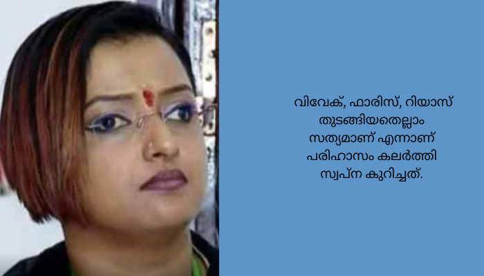 വിവാദങ്ങളിൽ മിത്തും സത്യവും ചേര്ത്ത് വച്ച് കൊണ്ടാണ് സ്വപ്നയുടെ ഫേസ്ബുക്ക് പോസ്റ്റ്. ഗണപതിയും കൃഷ്ണനും അയ്യപ്പനുമെല്ലാം മിത്താണെന്ന് പറയുന്നു. എന്നാല്, സിഎംആർഎല്, ലാവ്ലിൻ, ബിരിയാണി ചെമ്പ്, സ്പ്രിംഗ്ളര്, കെ പദ്ധതികള്, വിവേക്, ഫാരിസ്, റിയാസ് തുടങ്ങിയതെല്ലാം സത്യമാണ് എന്നാണ് പരിഹാസം കലർത്തി സ്വപ്ന കുറിച്ചത്.