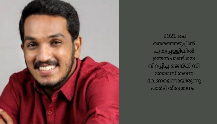 പുതുപ്പള്ളി ഉപതെരഞ്ഞെടുപ്പിൽ ജെയ്ക് സി തോമസിനെ മൂന്നാം അങ്കത്തിന് ഇറക്കാനാണ് സിപിഎം തീരുമാനം. ജില്ലാസെക്രട്ടേറിയറ്റ് നൽകിയ ഒറ്റപേര് സംസ്ഥാന സെക്രട്ടേറിയറ്റ് അംഗീകരിക്കുകയായിരുന്നു. ഔദ്യോഗിക പ്രഖ്യാപനം നാളെ കോട്ടയത്ത് നടക്കും. ഉമ്മൻചാണ്ടിയെന്ന വികാരം പരമാവധി മുതലെടുത്ത് ഉപതെരഞ്ഞെടുപ്പിന് ഇറങ്ങുന്ന കോൺഗ്രസിനെ നേരിടാൻ 2021 ലെ തെരഞ്ഞടുപ്പിൽ പുതുപ്പള്ളിയിൽ ഉമ്മൻചാണ്ടിയെ വിറപ്പിച്ച ജെയ്ക് സി തോമസ് തന്നെ വേണമെന്നായിരുന്നു പാർട്ടി തീരുമാനം. ലോക്കൽ കമ്മിറ്റികളിൽ നിന്ന് നൽകിയ ഒറ്റപ്പേര് ജില്ലാ നേതൃത്വം സംസ്ഥാന സെക്രട്ടേറിയറ്റിന് മുന്നിൽ വച്ചപ്പോൾ, ഉപതെരഞ്ഞെടുപ്പിൽ രാഷ്ട്രീയം മാത്രം പറയണമെന്നുറപ്പിച്ച സംസ്ഥാന നേതൃത്വത്തിനും മറിച്ചൊരഭിപ്രായമുണ്ടായിരുന്നില്ല. 2016 ലും 2021 ലും ഉമ്മൻചാണ്ടിക്കെതിരെ മികച്ച പ്രകടനം കാഴ്ച വച്ച ജെയ്ക്ക് ഉപതെരഞ്ഞെടുപ്പിൽ ചാണ്ടി ഉമ്മന് എതിരാളിയാകും. എസ്എഫ്ഐയിലൂടെ രാഷ്ട്രീയത്തിലേക്ക് എത്തിയ ജെയ്ക്ക നിലവിൽ കോട്ടയം ജില്ലാ കമ്മിറ്റി അംഗമാണ്. ഡിവൈഎഫ്ഐ സംസ്ഥാന സെക്രട്ടേറിയറ്റിലും കേന്ദ്രകമ്മിറ്റിയിലും ഉണ്ട്. മണര്കാട് സ്വദേശിയായ ജെയ്ക് സി തോമസിന് മതസാമുദായിക ഘടകങ്ങളും അനുകൂലമെന്നാണ് വിലയിരുത്തൽ