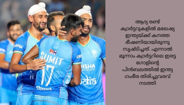 ഏഷ്യൻ ചാമ്പ്യൻസ് ട്രോഫി ഹോക്കിയിൽ ഇന്ത്യയ്ക്ക് കിരീടം. ഫൈനലിൽ മലേഷ്യയെ 4-3ന് തോൽപ്പിച്ചു.