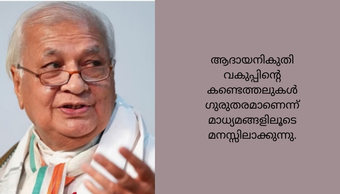 മുഖ്യമന്ത്രി പിണറായി വിജയന്റെ മകള് വീണ വിജയന് സിഎംആര്എല് കമ്പനി മാസപ്പടി നല്കിയെന്ന വിവാദത്തില് പ്രതികരണവുമായി ഗവര്ണര് ആരിഫ് മുഹമ്മദ് ഖാന് രംഗത്ത്. ആദായനികുതി വകുപ്പിന്റെ കണ്ടെത്തലുകൾ ഗുരുതരമാണെന്ന് മാധ്യമങ്ങളിലൂടെ മനസ്സിലാക്കുന്നു.