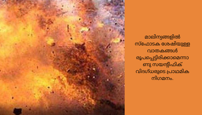 മാലിന്യങ്ങൾക്കു തീ പിടിച്ചപ്പോൾ ഇതു പൊട്ടിത്തെറിയായി മാറിയതാകാമെന്നും കരുതുന്നു. പൊട്ടിത്തെറിയെ തുടർന്ന് മാലിന്യങ്ങൾ പുറത്തേക്കു തെറിച്ചിരുന്നു. തീയിടാൻ ഉപയോഗിച്ചതെന്നു കരുതുന്ന കനമുള്ള പേപ്പർ സമീപത്തെ തെങ്ങിനു മുകളിൽനിന്നാണു കണ്ടെത്തിയതെന്നു പൊലീസ് അറിയിച്ചു.