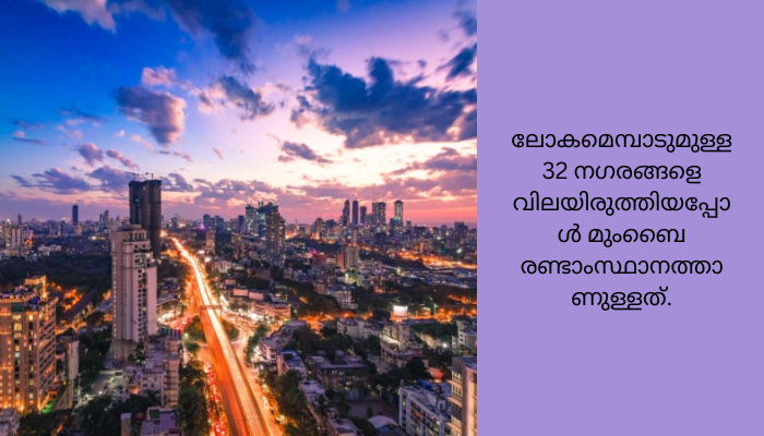 ഇന്ന് വർധിച്ചുവരികയാണ്. ഒരു സാധാരണക്കാരന് താങ്ങാനാകുന്നതിലും മുകളിലാണ് ഇപ്പോൾ ഇന്ത്യയിൽ ജീവിതച്ചെലവ് ഏറ്റവും കൂടുതലുളള നഗരമായി മുംബൈ. പ്രശസ്ത പ്രോപ്പർട്ടി കൺസൾട്ടന്റ് സ്ഥാപനമായ നൈറ്റ് ഫ്രാങ്ക് ഇന്ത്യയുടെ റിപ്പോർട് പ്രകാരമാണ് മുംബൈ ഈ സ്ഥാനത്തെത്തിയിരിക്കുന്നത്. ലോകമെമ്പാടുമുള്ള 32 നഗരങ്ങളെ വിലയിരുത്തിയപ്പോൾ മുംബൈ രണ്ടാംസ്ഥാനത്താണുള്ളത്.