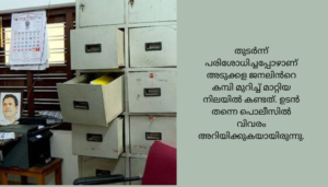 അലമാരകളിലെ സാധനങ്ങളെല്ലാം താഴെ വാരിവലിച്ചിട്ടിരിക്കുകയായിരുന്നുവെന്നും പൊലീസ് പറഞ്ഞു. തുടർന്ന് പരിശോധിച്ചപ്പോഴാണ് അടുക്കള ജനലിൻറെ കമ്പി മുറിച്ച് മാറ്റിയ നിലയിൽ കണ്ടത്. ഉടൻ തന്നെ പൊലീസിൽ വിവരം അറിയിക്കുകയായിരുന്നു.
