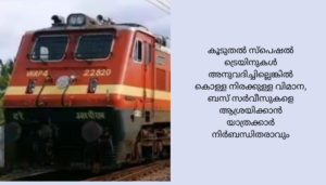 ട്രെയിൻ നമ്ബര് 06041 താംബരം – മംഗളൂരു ഫെസ്റ്റിവല് സ്പെഷല് 22, 29 തിയതികളിലും സെപ്തംബര് അഞ്ചിനും ഉച്ചയ്ക്ക് 1.30ന് പുറപ്പെട്ട് പുലര്ച്ചെ 1.40ന് തിരൂരിലെത്തും. ഈ ട്രെയിനില് ടിക്കറ്റുണ്ട്. എന്നാല് തിരുവോണത്തോട് അനുബന്ധിച്ച് നാട്ടിലെത്താനാണ് മിക്കവരും ശ്രമിക്കുക എന്നതിനാല് പ്രതിദിന ട്രെയിനുകളിലൊന്നും ടിക്കറ്റില്ല. മലയാളികള് ഏറെയുള്ള ബംഗളൂരു, ചെന്നൈ, മുംബൈ, ഡല്ഹി എന്നിവിടങ്ങളില് നിന്ന് കൂടുതല് സ്പെഷല് ട്രെയിനുകള് അനുവദിച്ചില്ലെങ്കില് കൊള്ള നിരക്കുള്ള വിമാന, ബസ് സര്വീസുകളെ ആശ്രയിക്കാൻ യാത്രക്കാര് നിര്ബന്ധിതരാവും