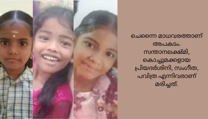 വീട്ടിനുള്ളിൽ കൊതുകുനശീകരണ ഉപകരണത്തിൽ നിന്ന് തീപടർന്ന് മുത്തശ്ശിയും മൂന്നു കൊച്ചുമക്കളും വെന്തുമരിച്ചു. ചെന്നൈ മാധവരത്താണ് അപകടം. സന്താനലക്ഷ്മി, കൊച്ചുമക്കളായ പ്രിയദർശിനി, സംഗീത, പവിത്ര എന്നിവരാണ് മരിച്ചത്.
